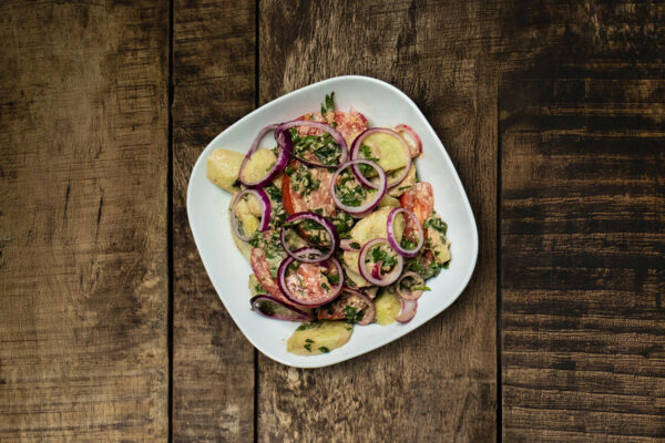 OKURKY, RAJČATA, CIBULE, KOŘENÍ SE ZAKYSANOU SMETANOU / CUCUMBERS, TOMATOES, ONIONS, GEORGIAN SPICES WITH SOUR CREAM / ОГУРЦЫ, ПОМИДОРЫ, ЛУК, ГРУЗИНСКАЯ ЗЕЛЕНЬ СО СМЕТАНОЙ
